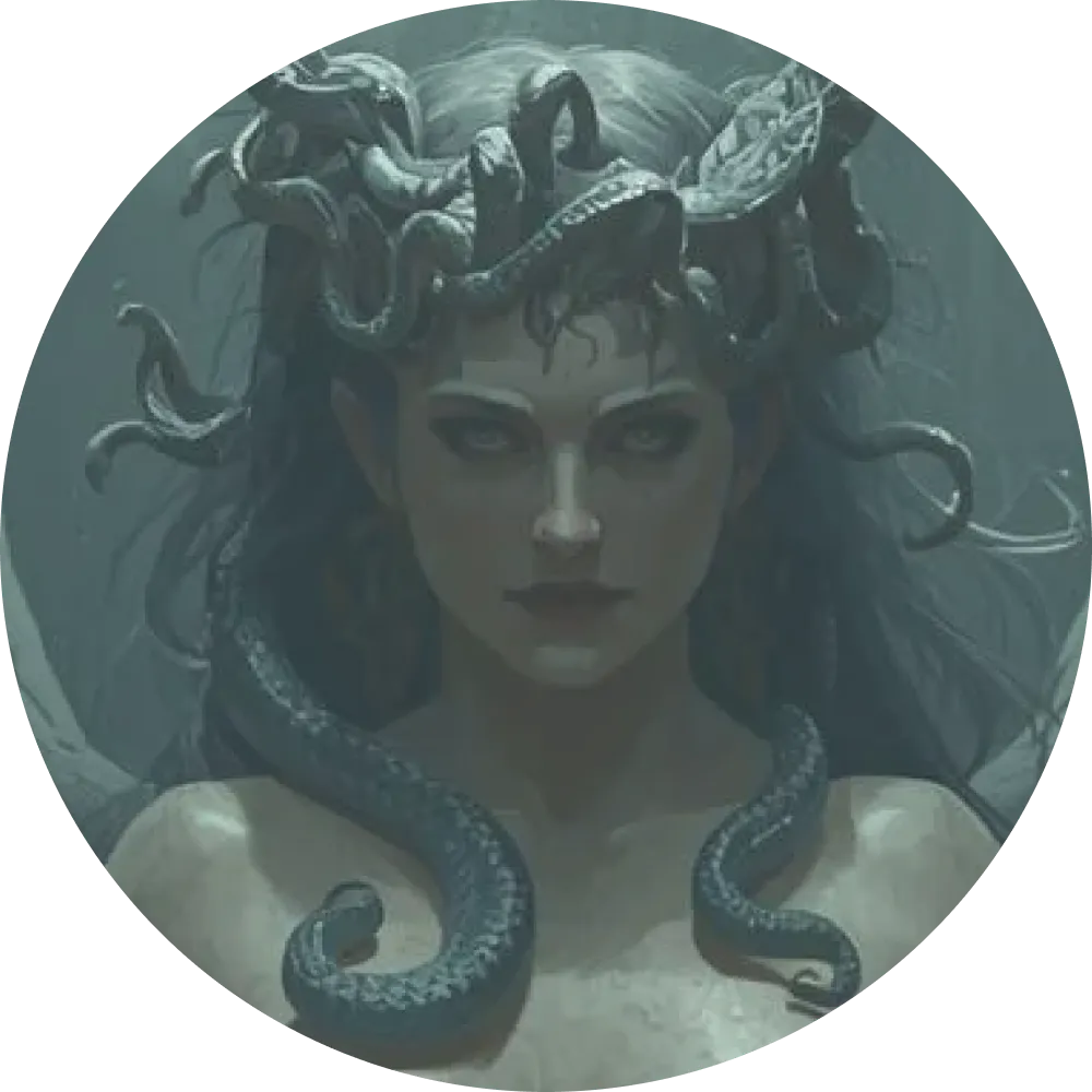 - 頭部には、毒蛇が絡みつく蛇髪